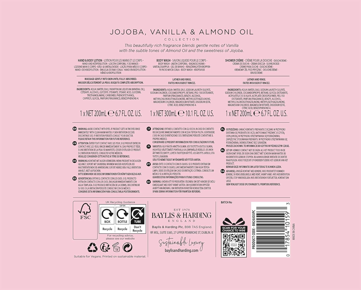 Baylis & Harding Jojoba, Vanilla & Almond Oil Luxury Bathing Essentials Gift Set.